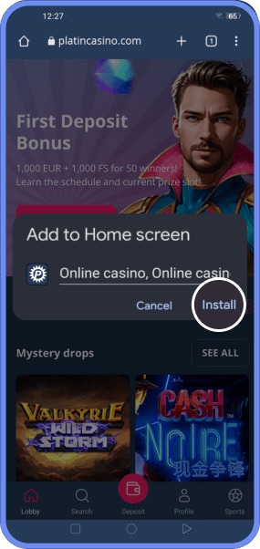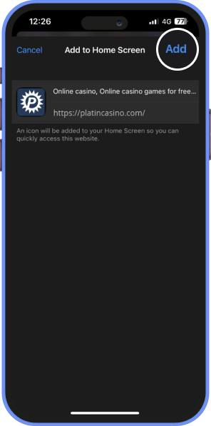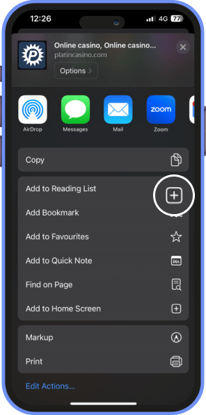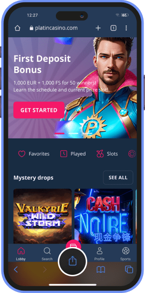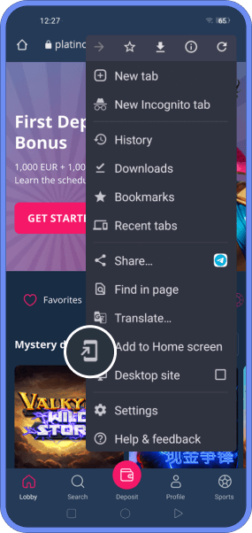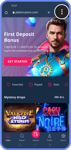 Gehe auf die Homepage von PLATINCASINO und tippe auf die drei Punkte, um das Browsermenü zu öffnen.